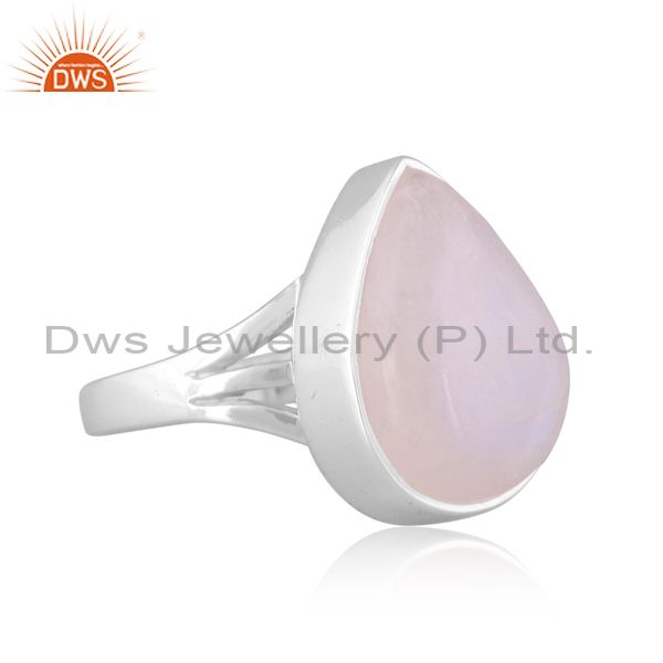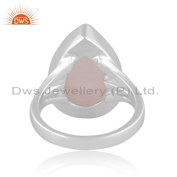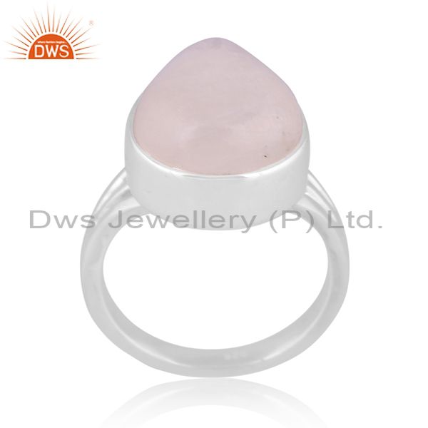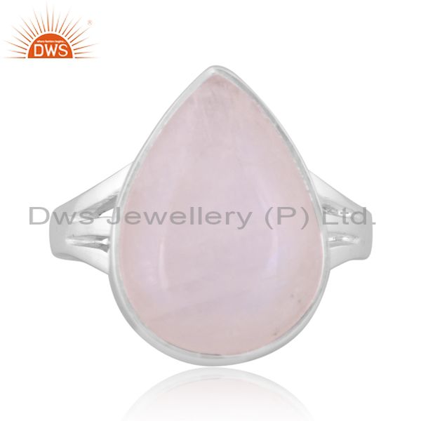 Pear Cut Rose Quartz Set Fine 925 Silver Band Style Ring