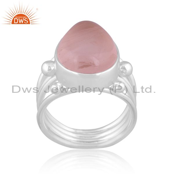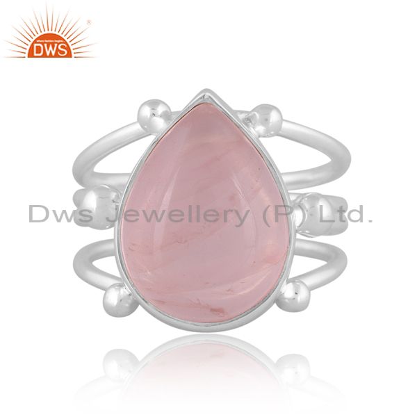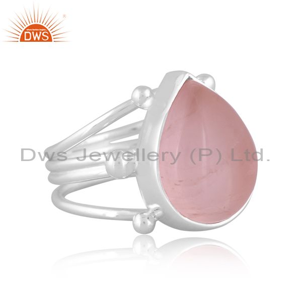 Pear Cut Rose Quartz Set Fine Sterling Silver Designer Ring