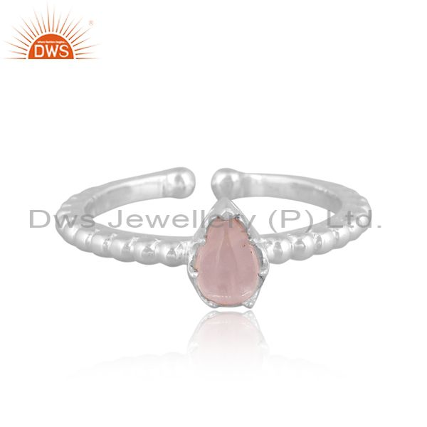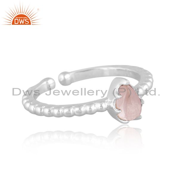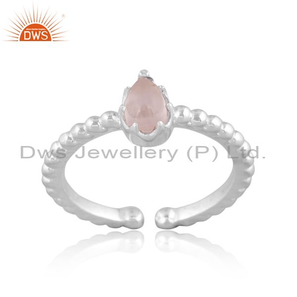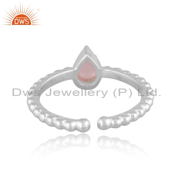 Pear Cut Rose Quartz Set Fine Sterling Silver Handmade Ring