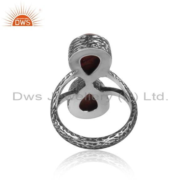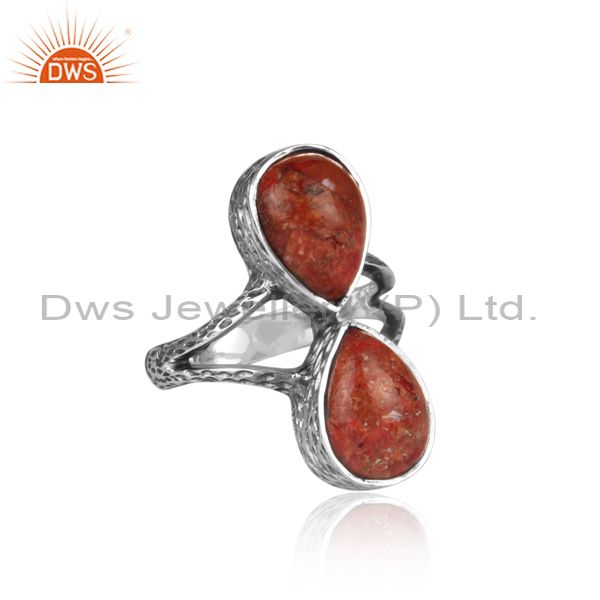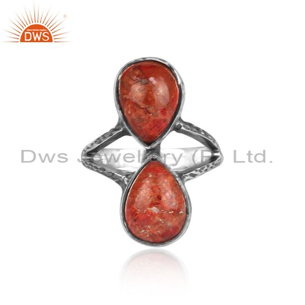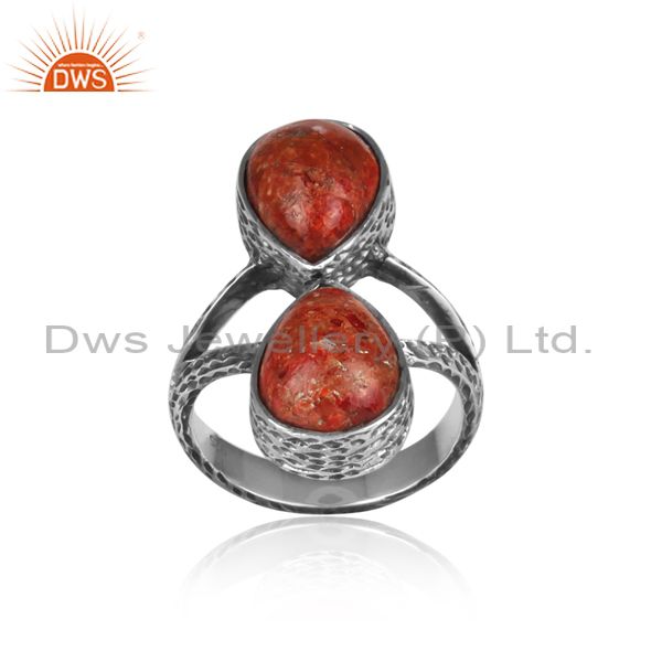 Pear Cut Sponge Coral Set Oxidized 925 Sterling Silver Ring