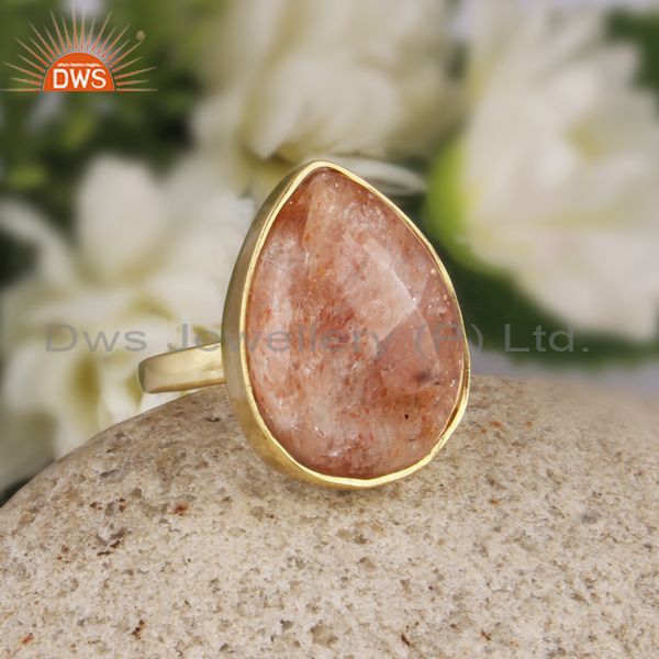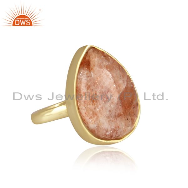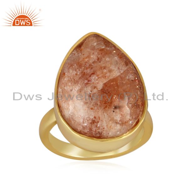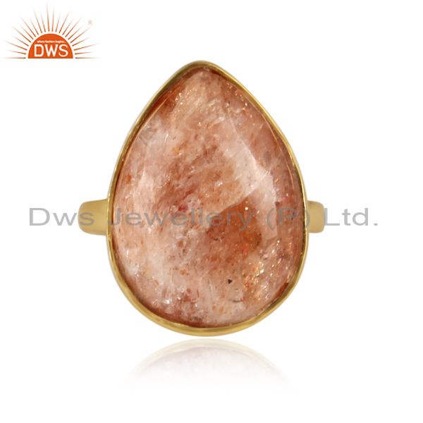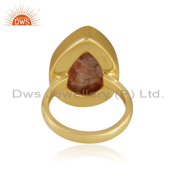 Pear Cut Sun Stone Set Gold On 925 Silver Statement Ring