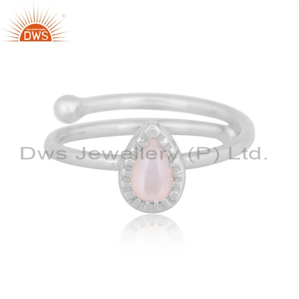 Pear Cut White Moon Stone Fine Silver Handmade Crown Ring