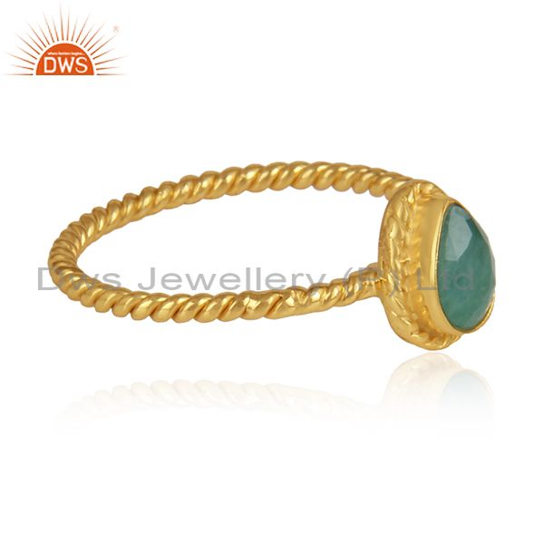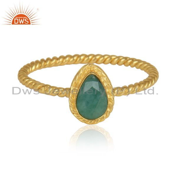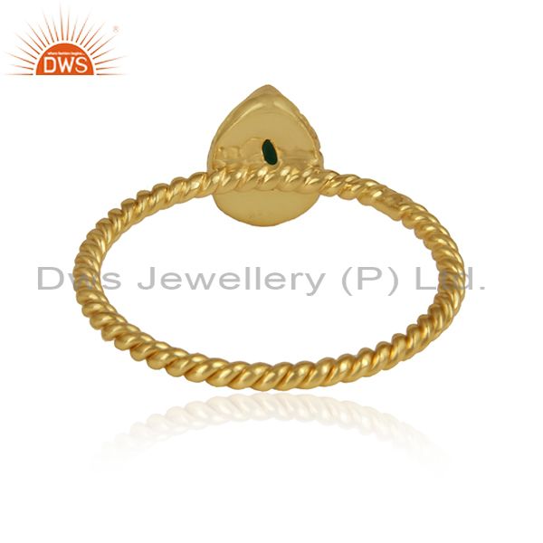 Pear Emerald Gemstone Designer Gold Plated 925 Silver Rings