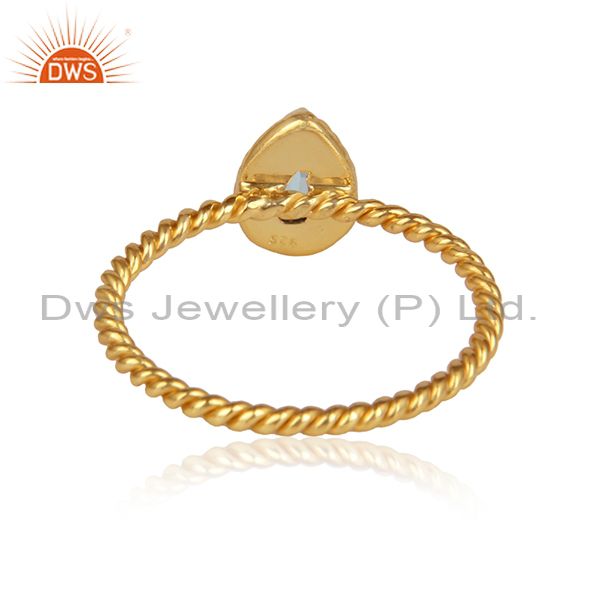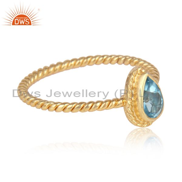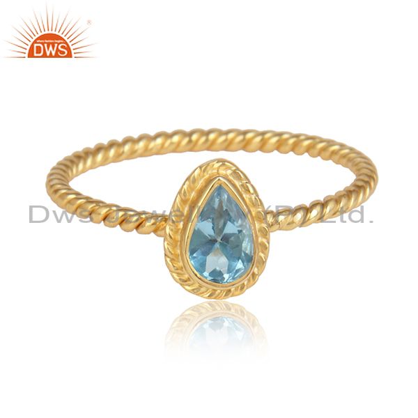 Pear Shape Blue Topaz Gemstone Gold Plated Designer Silver Rings
