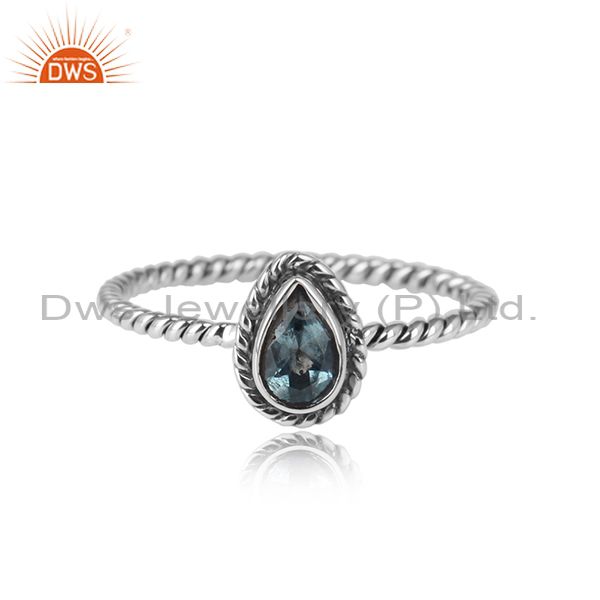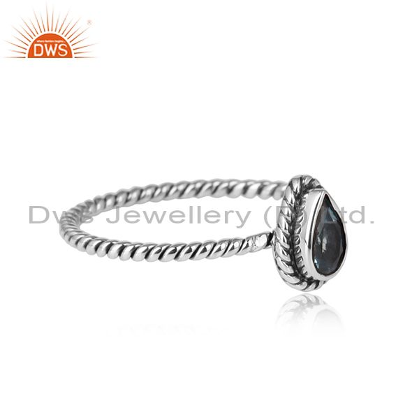 Pear Shape Oxidized 925 Sterling Silver Blue Topaz Gemstone Rings