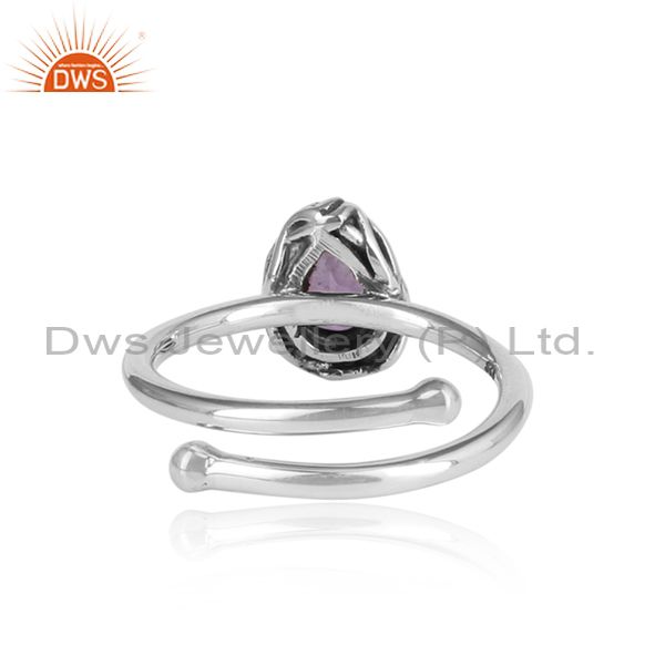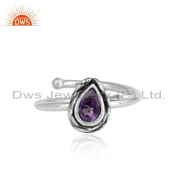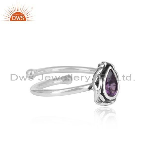 Pear shaped AMETHYST CUT sterling silver oxidized ring