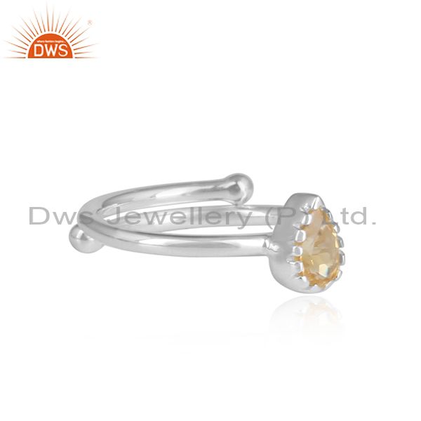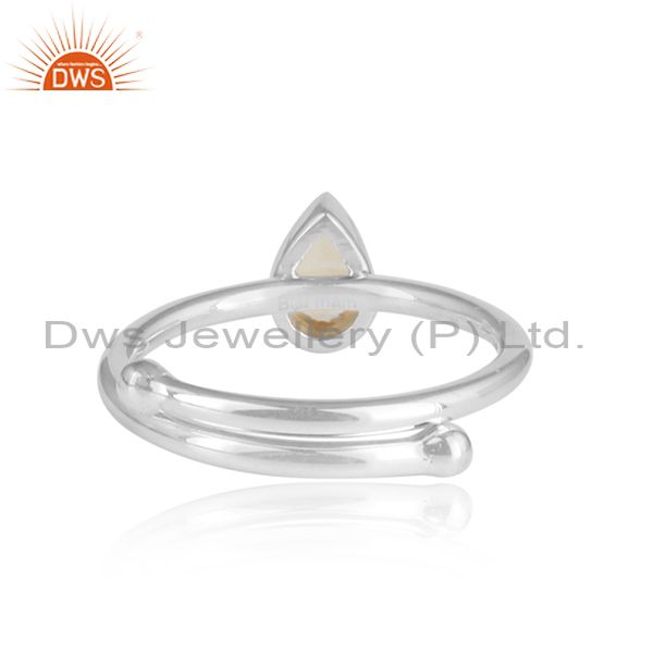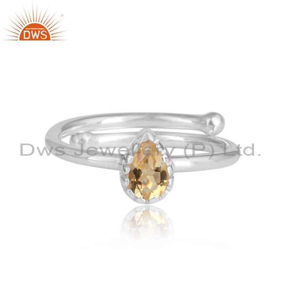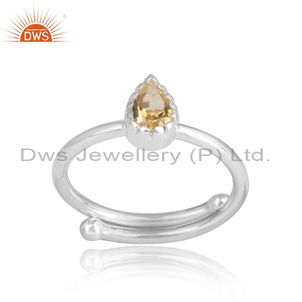 Pear Shaped Citrine Set In A Halo 925 Oxidized Silver Ring
