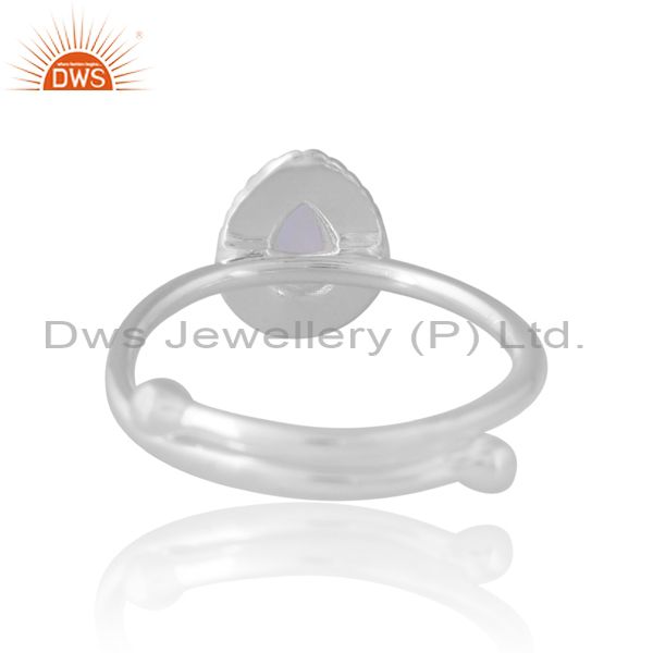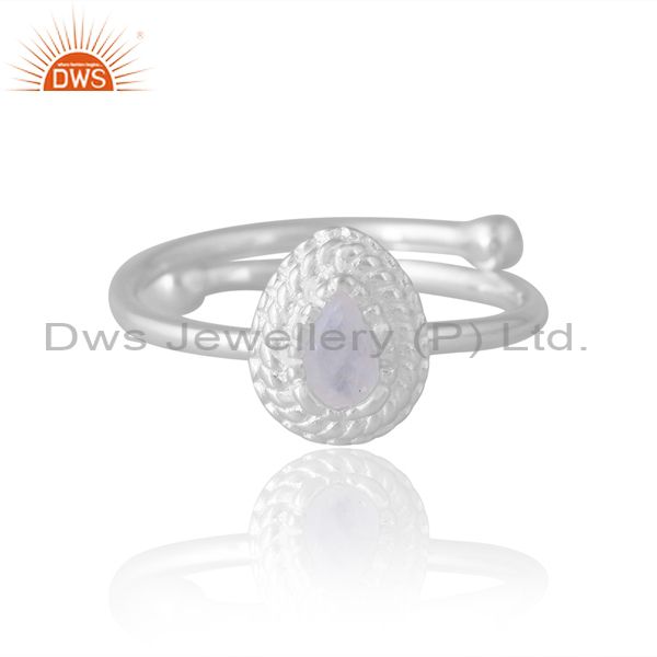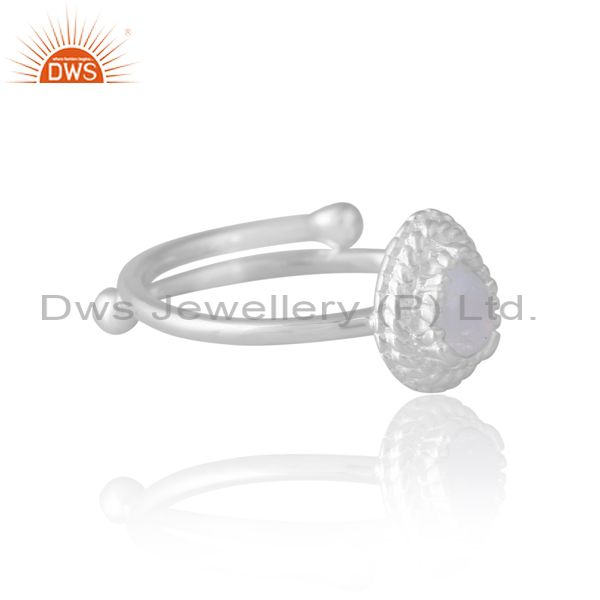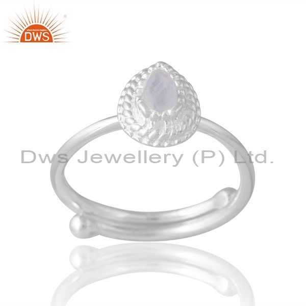 Pear Sterling Silver White Ring With Rainbow Moonstone