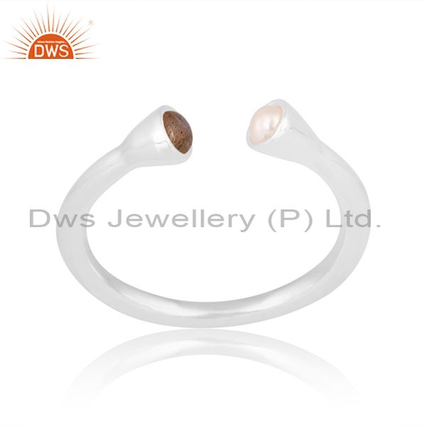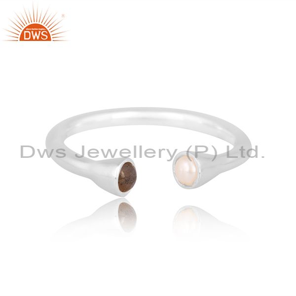 Pearl And Labradorite Set Fine Sterling Silver Fancy Ring