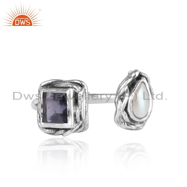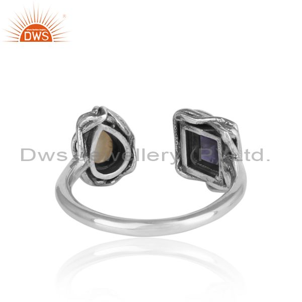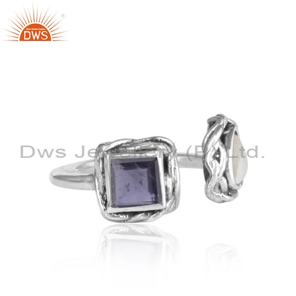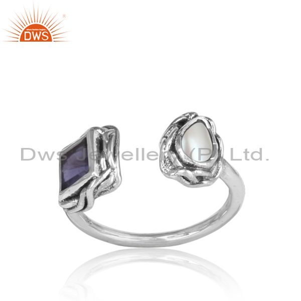 Pearl Cabushion & Iolite Facing Sterling Silver Ring