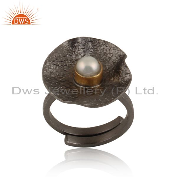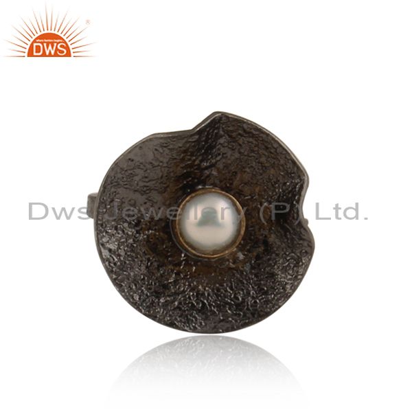 Pearl Cabushion Set Sterling Silver Rhodium Plated Ring