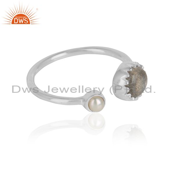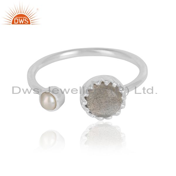 Pearl Labradorite Gemstone Girls 925 Sterling Silver Ring Jewelry
