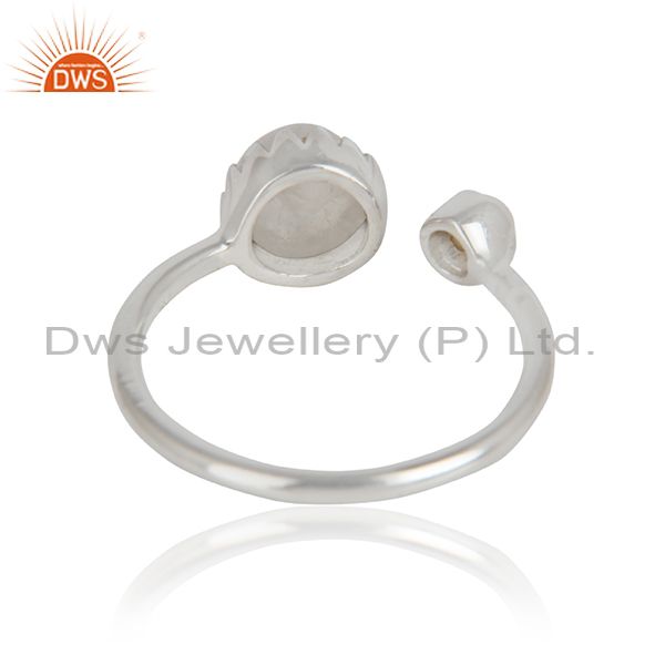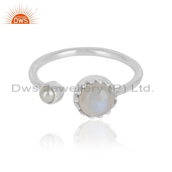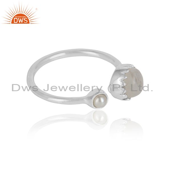 Pearl Rainbow Moonstone Womens Sterling Silver Designer Rings