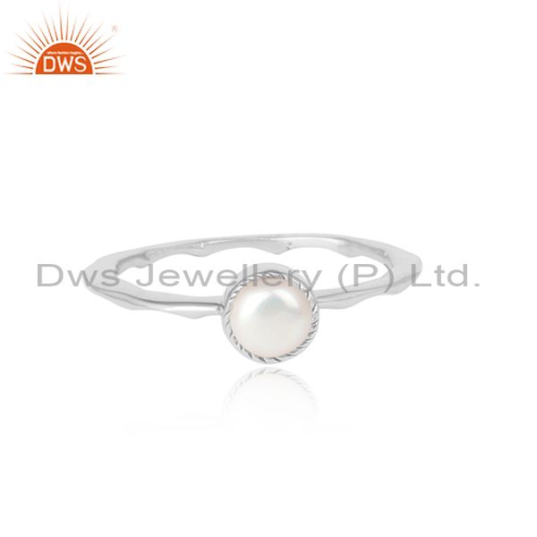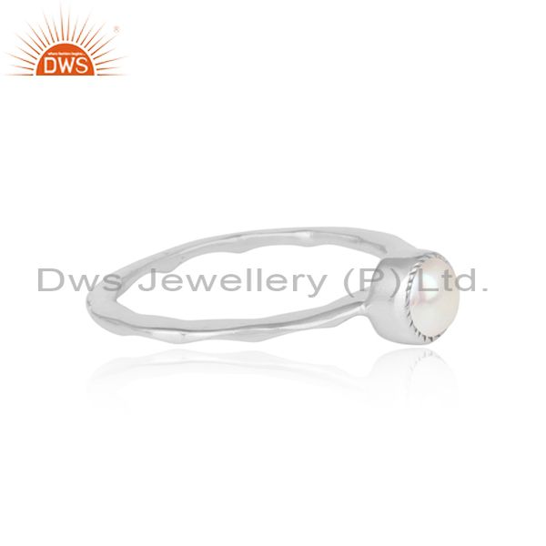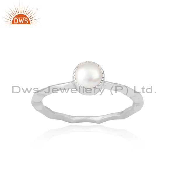 Pearl Set Fine 925 Sterling Silver Hammered Crown Fancy Ring