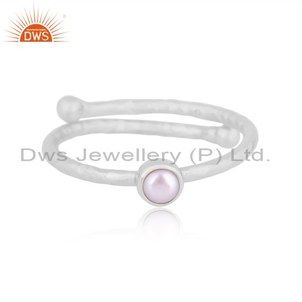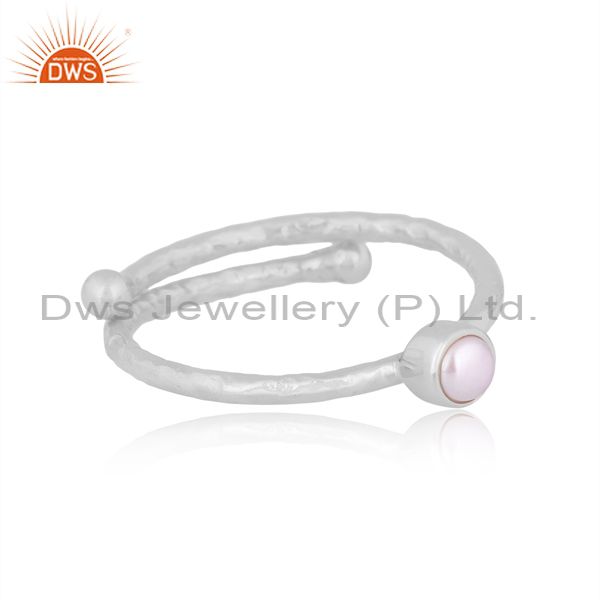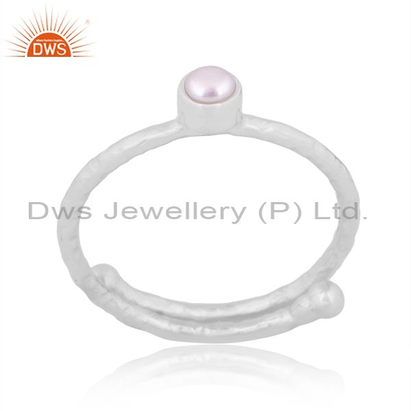 Pearl Set Fine 925 Sterling Silver Handhammered Classic Ring
