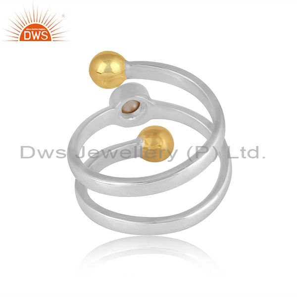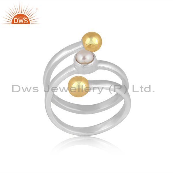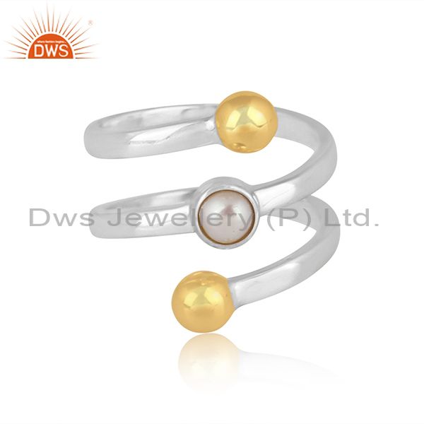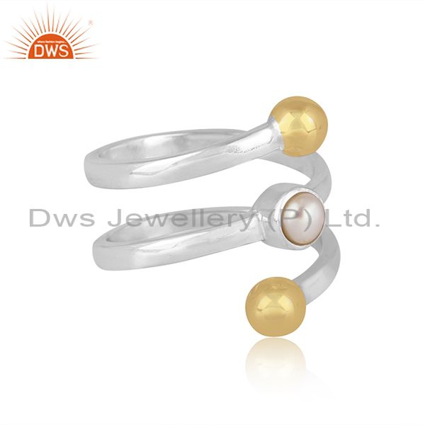 Pearl Set Gold On Fine 925 Sterling Silver Multi Twist Ring