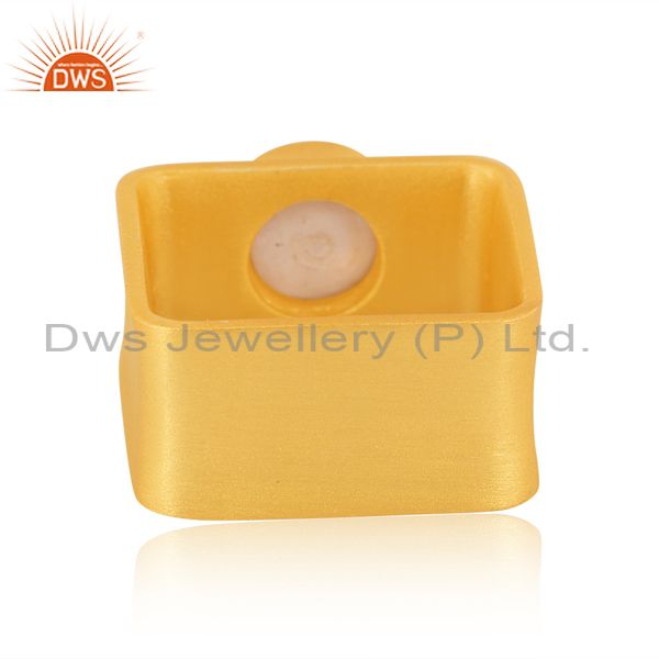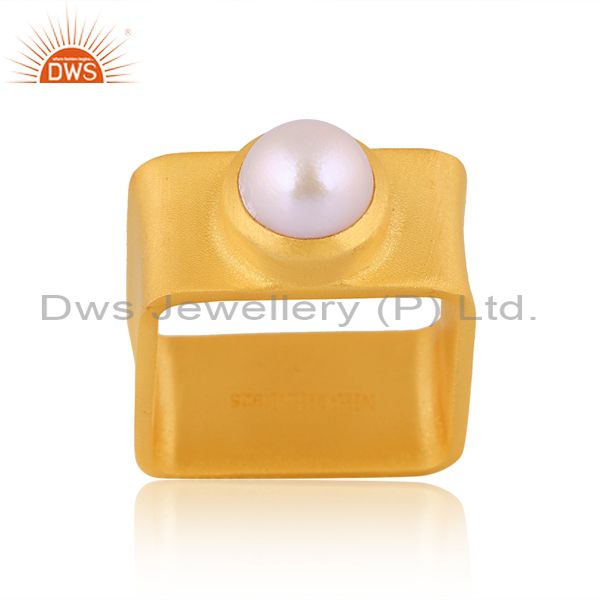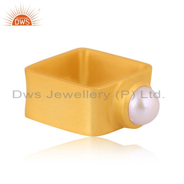 Pearl Set Gold On Sterling Silver Square Shape Abstract Ring