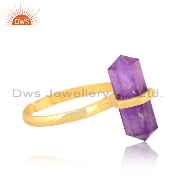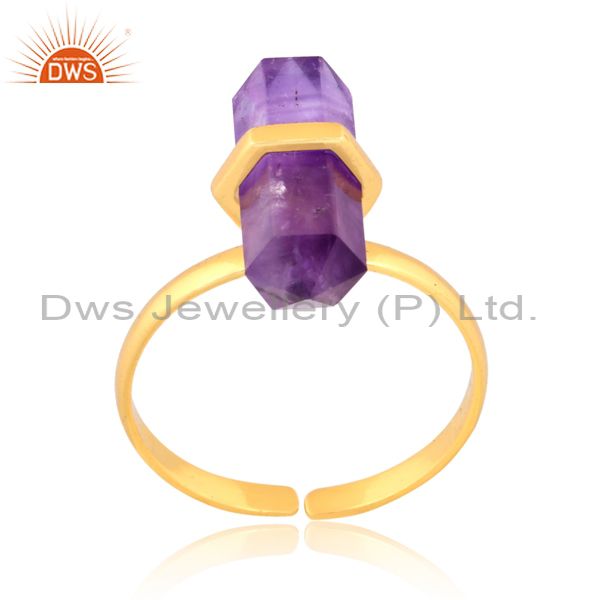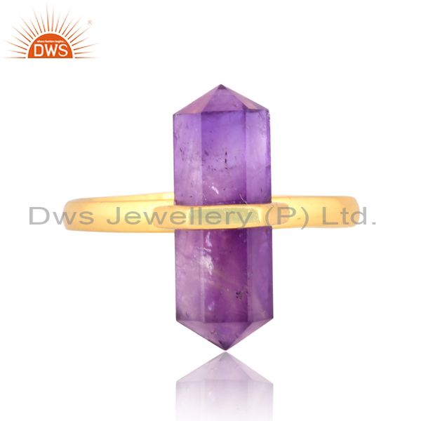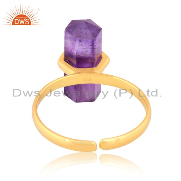 Pencil Cut Amethyst Set Gold On 925 Sterling Silver Ring