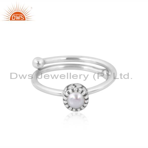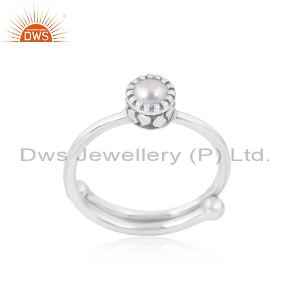 Perfect Adjustable Ring With Cabs Round Cut Pearl For Women