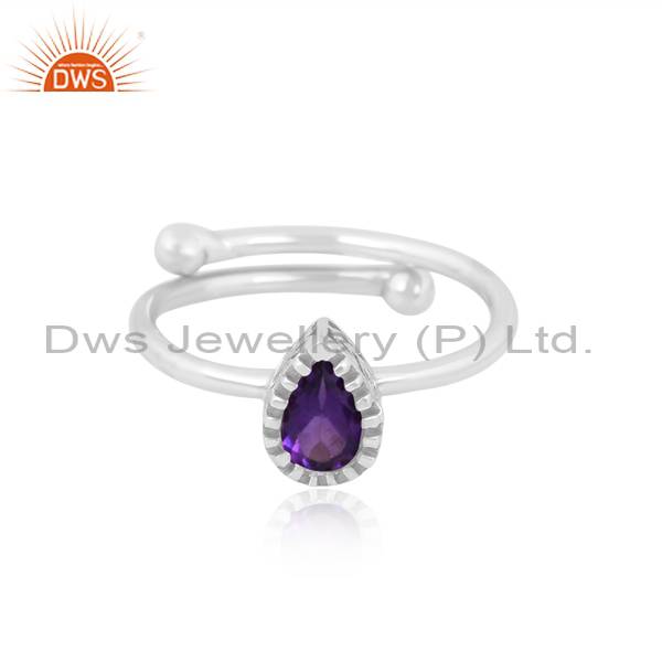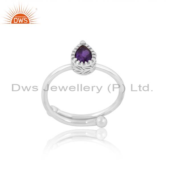 Perfect Adjustable Ring With Pear Cut Amethyst For Women