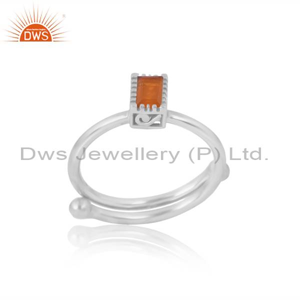 Perfect Couple Ring With Baguette Cut Carnelian Gemstone