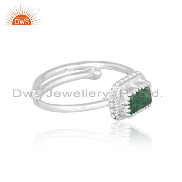 Perfect Couple Ring With Baguette Cut Green Strawberry Quartz