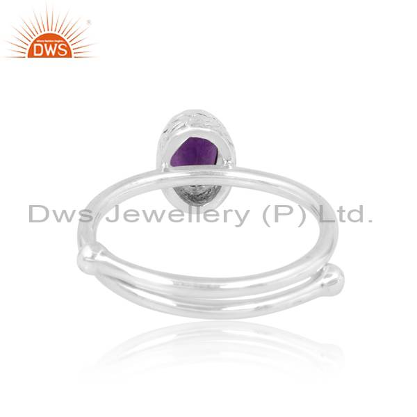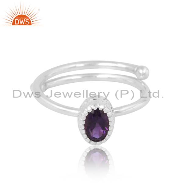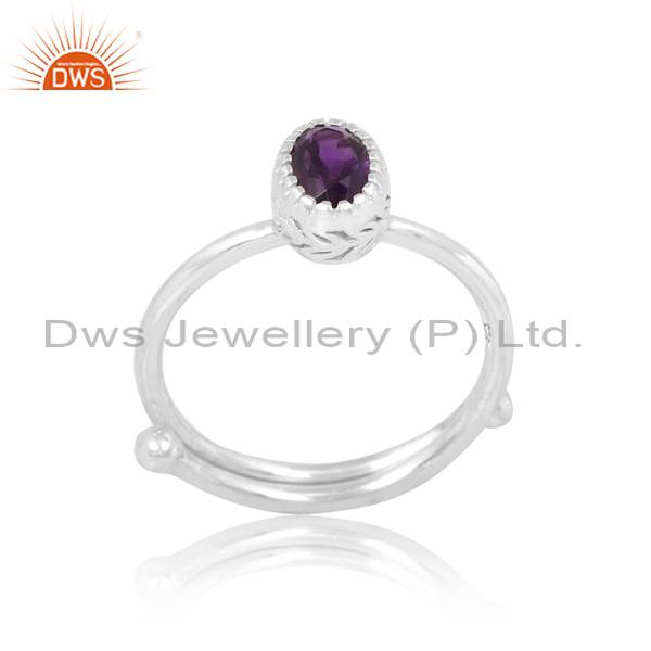 Perfect Couple Ring With Oval Cut Amethyst In Silver Metal