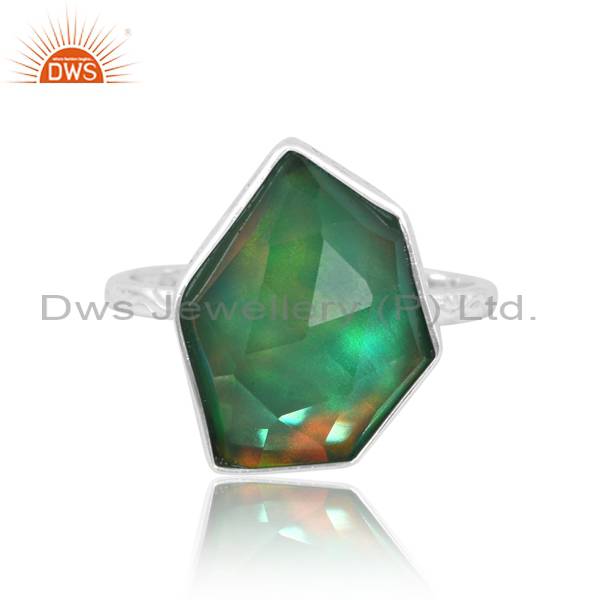 Perfect Finger Ring With Fancy Aurora Opal Green For Women
