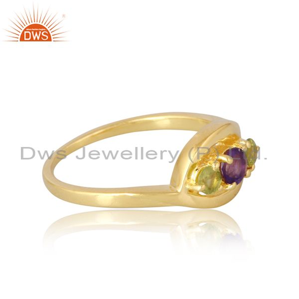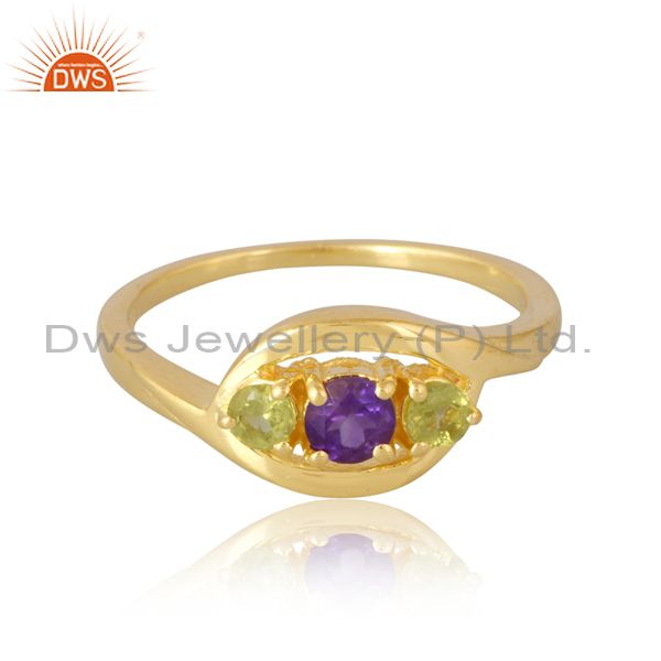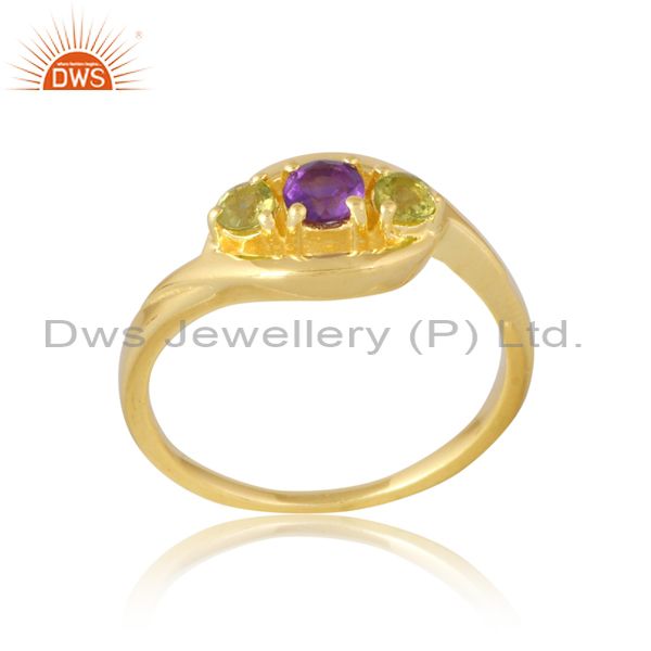 Peridot & Amethyst Ring In Silver & 18K Gold Plating