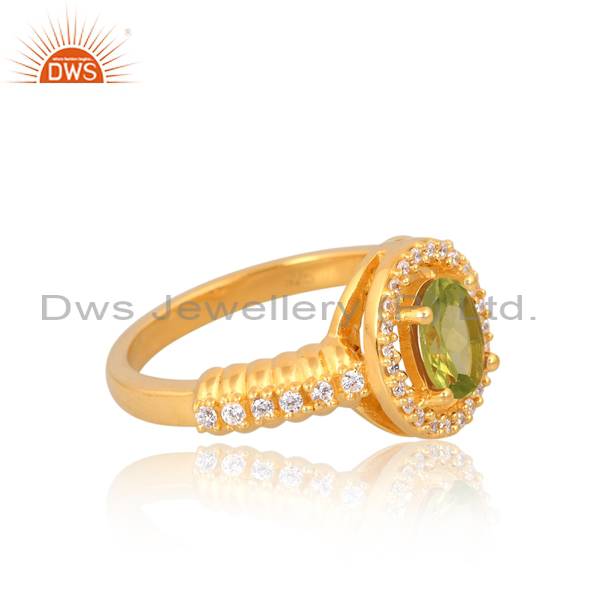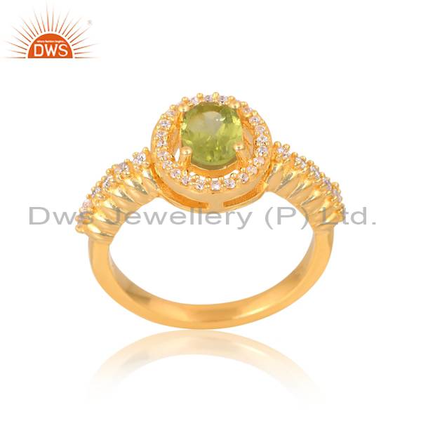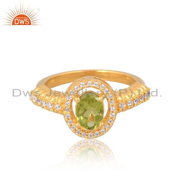 Peridot And Cz Gold Vermeil Ring: Elegant Gemstone Duo