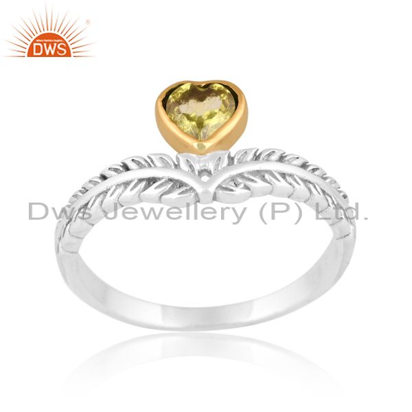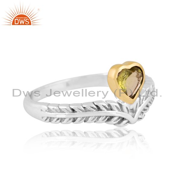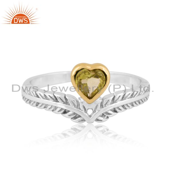 Peridot Cut Heart On White & Gold Sterling Silver Ring