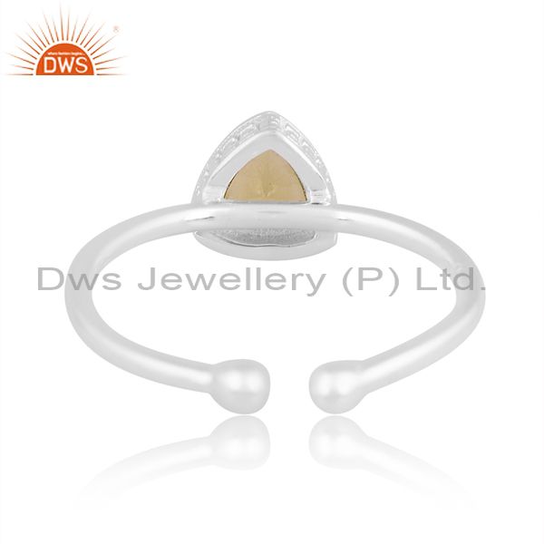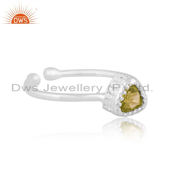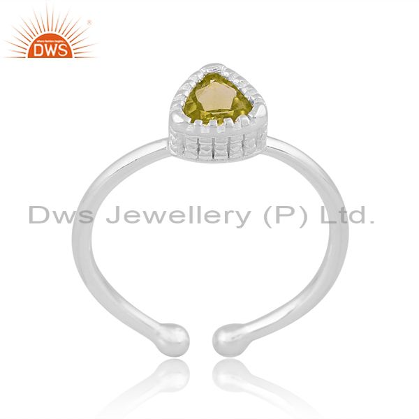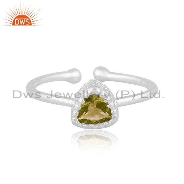 Peridot Cut Trillion Gemstone One White Sterling Silver Ring