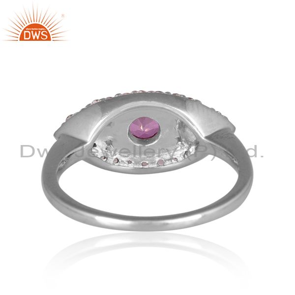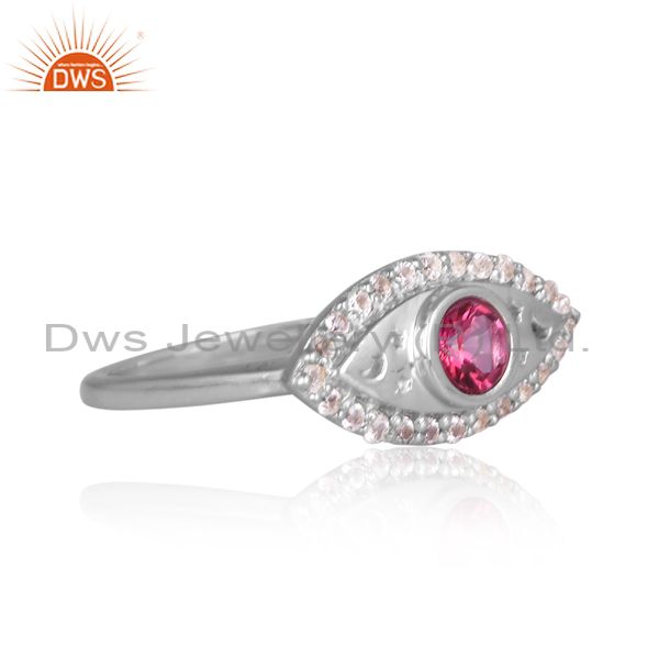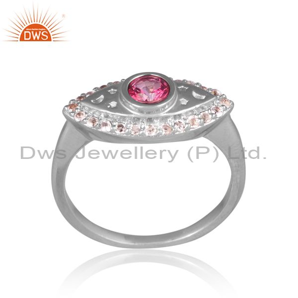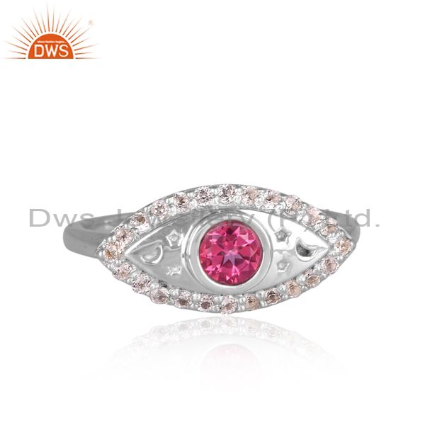 Pink & White Topaz Round On Gold Sterling Silver Ring