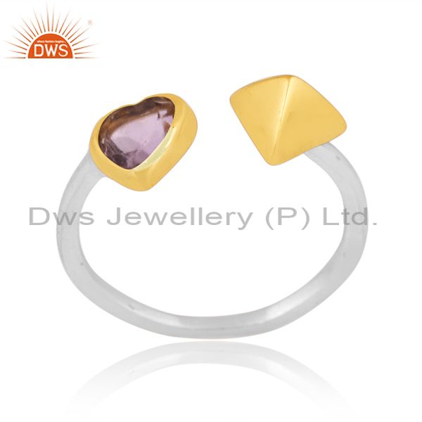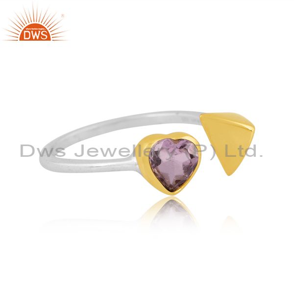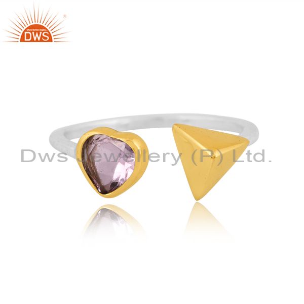 Pink Amethyst With Heart & Triangle Sterling Silver Ring