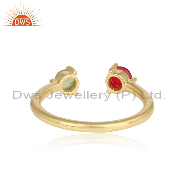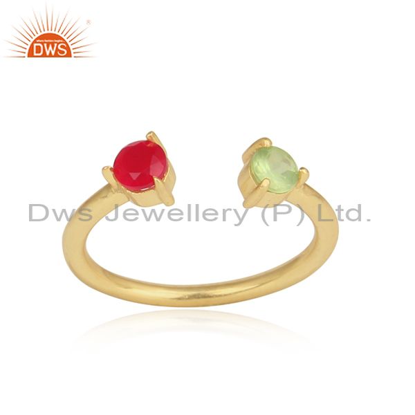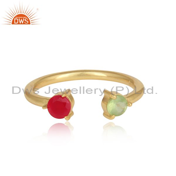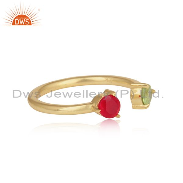 Pink Chalcedony, Peridot Set Gold On Silver Statement Ring