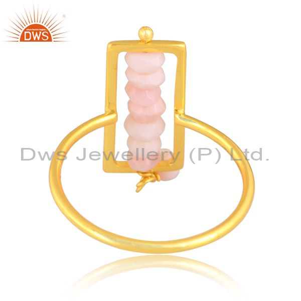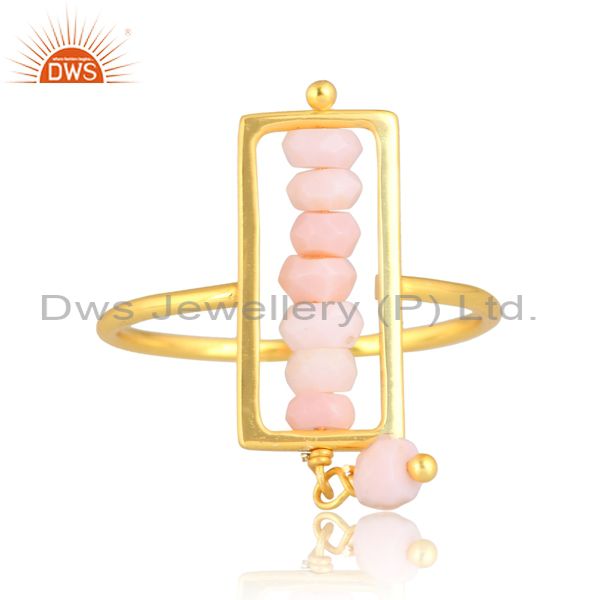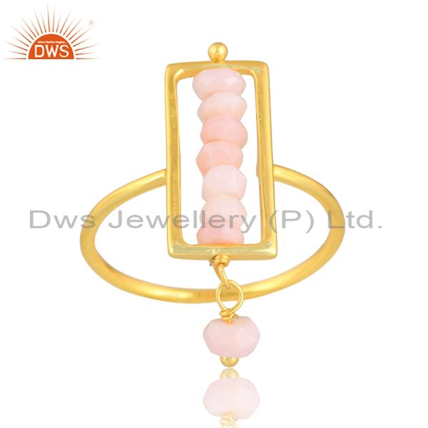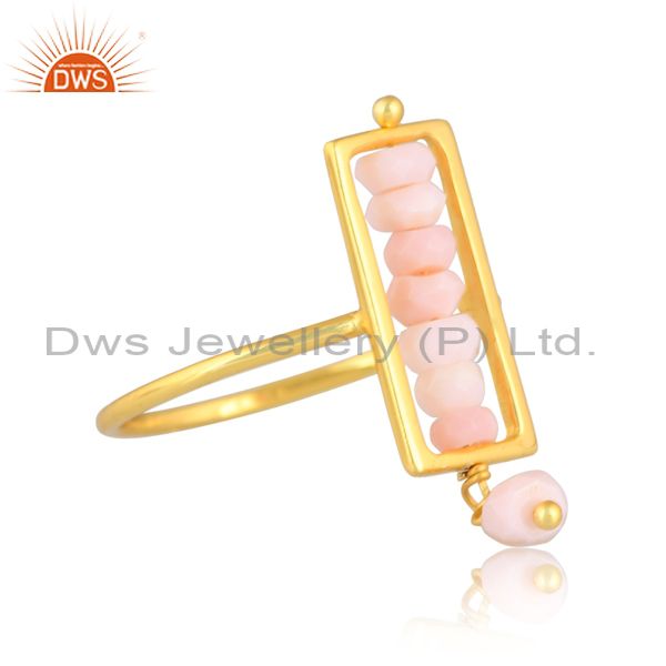 Pink Opal Set Gold On Sterling Silver Rectangle Charm Ring