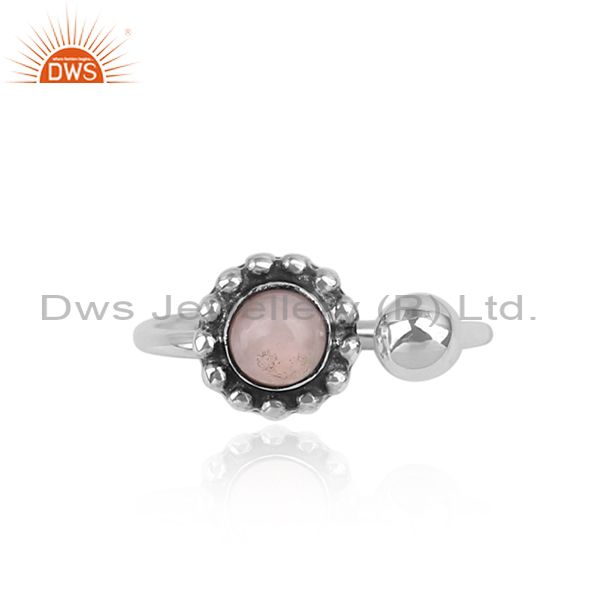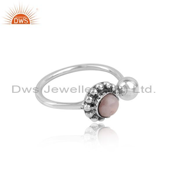 Pink Opal Set Oxidized Sterling Silver Handmade Ethnic Ring