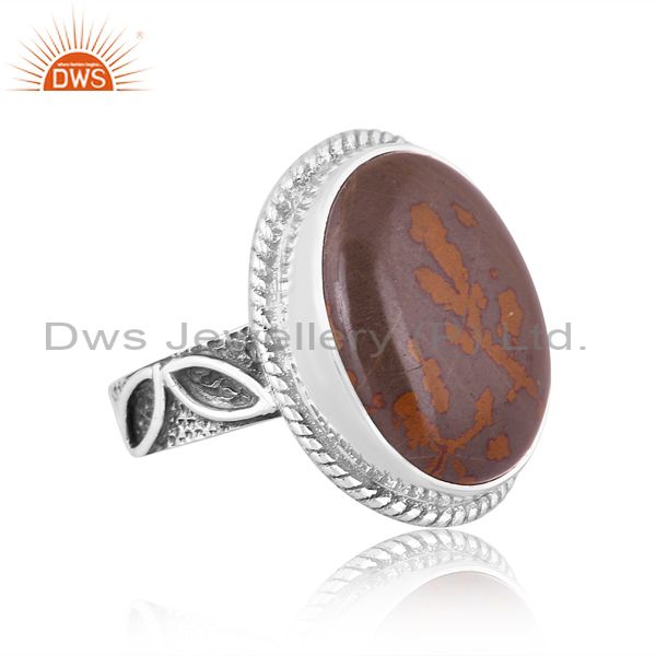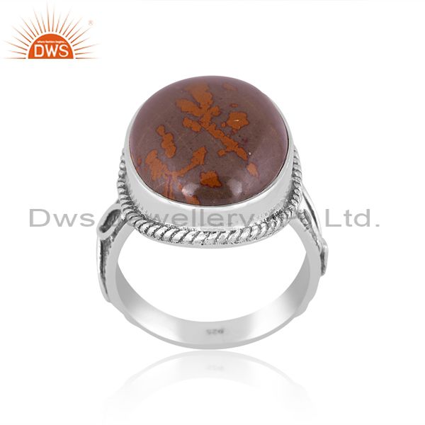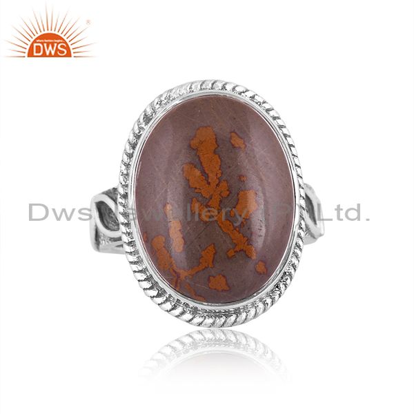 Pink Thulite Set Oxidized 925 Silver Handmade Ethnic Ring