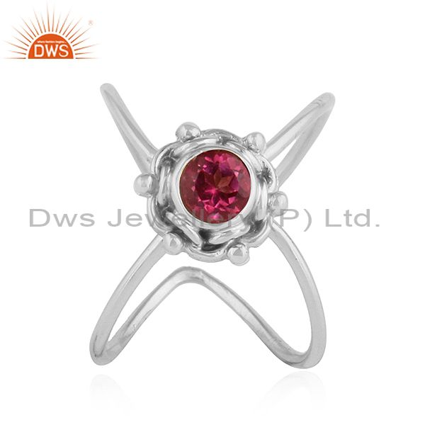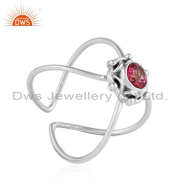 Pink Topaz Gemstone Stackable Oxidized Sterling Silver Ring Jewelry
