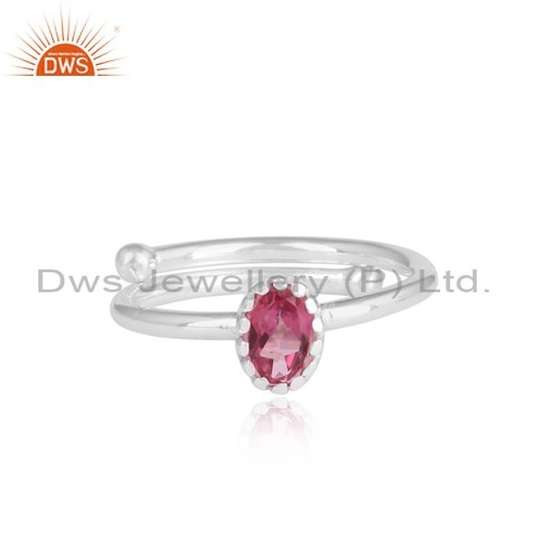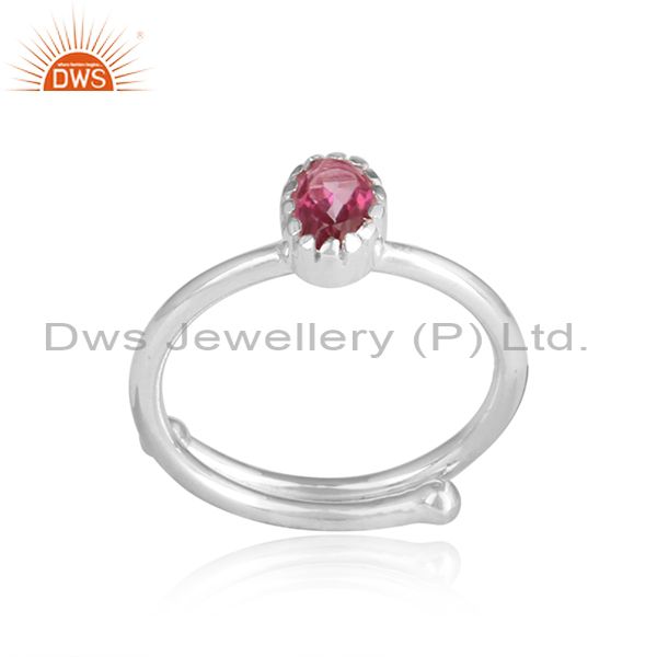 PINK TOPAZ pear shaped cut sterling silver white ring