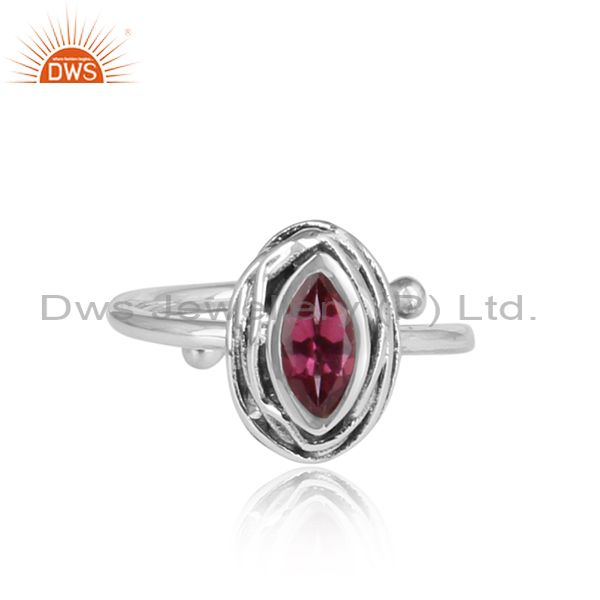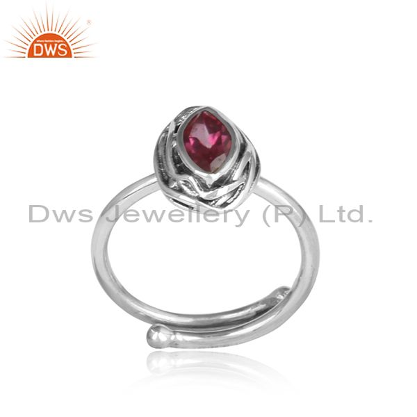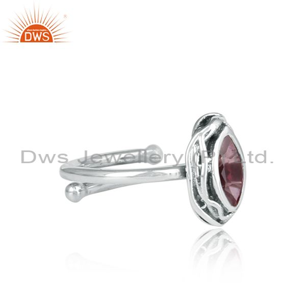 Pink Topaz Set In Sterling Silver Adjustable Ring