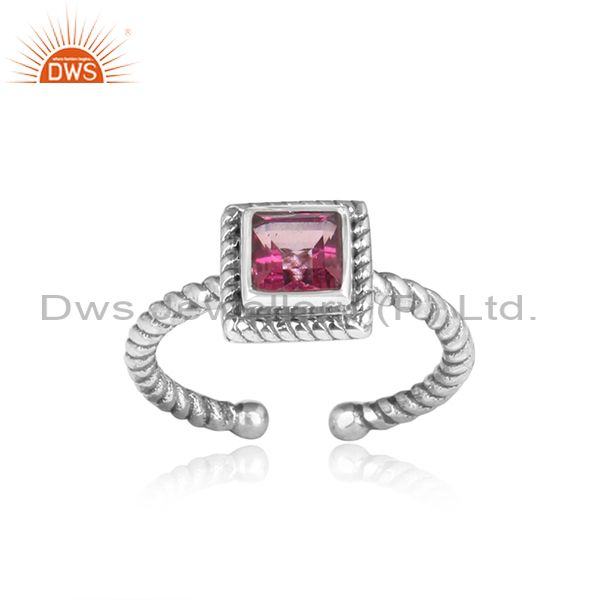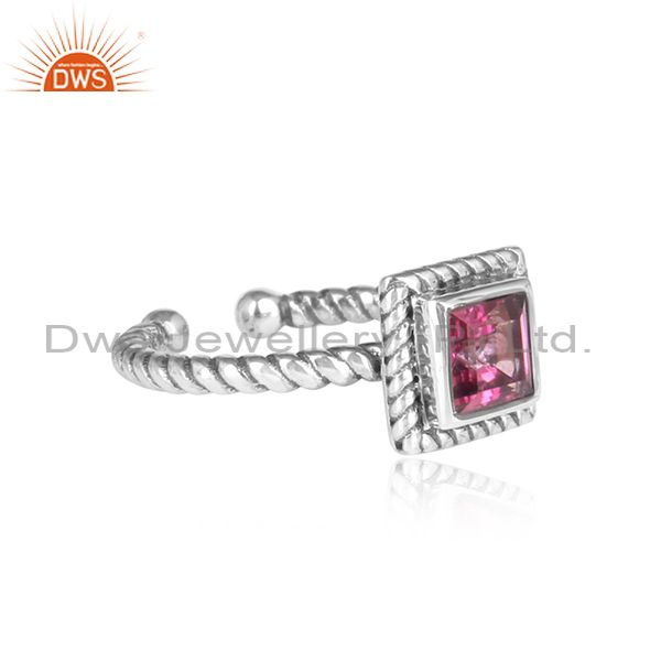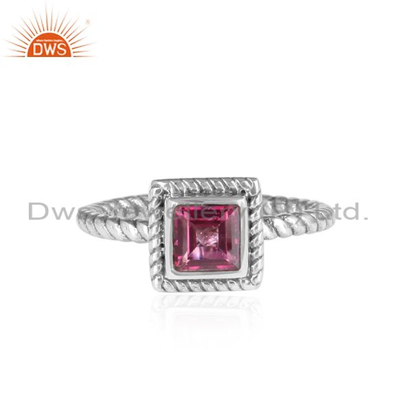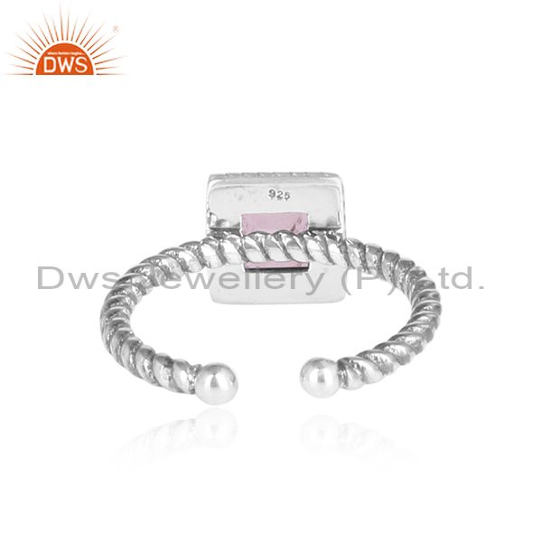 PINK TOPAZ square Cut sterling silver oxidized ring