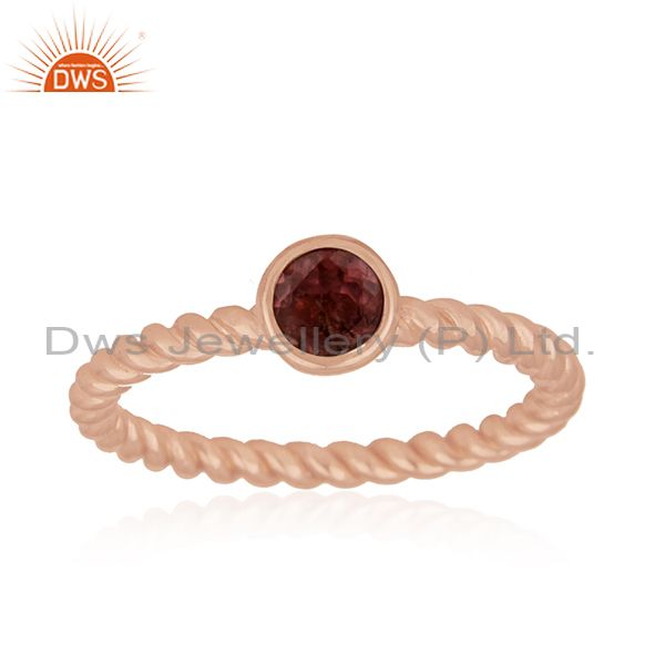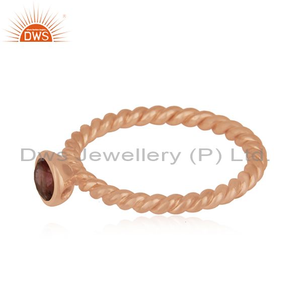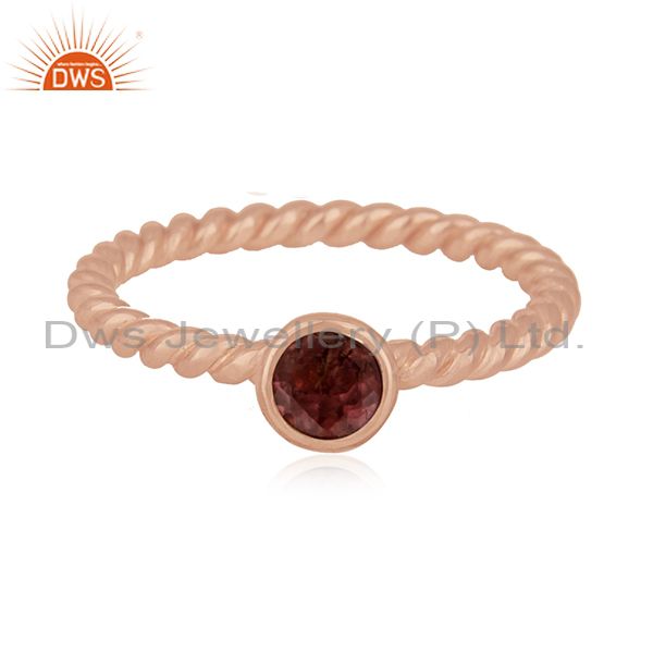 Pink Tourmaline Gemstone Rose Gold Plated Sterling Silver Midi Ring Manaufacture