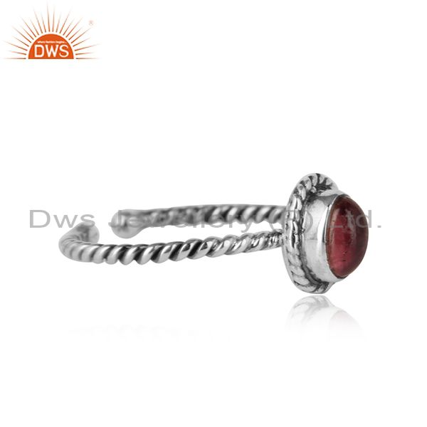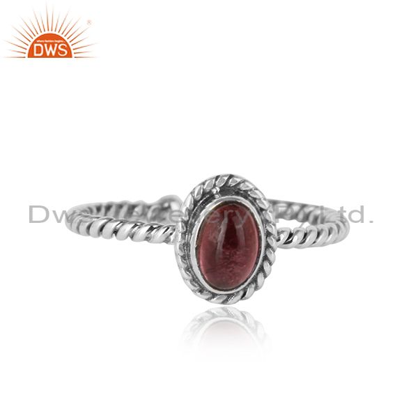 Pink Tourmaline Gemstone Twisted Silver Oxidized Ring Jewelry