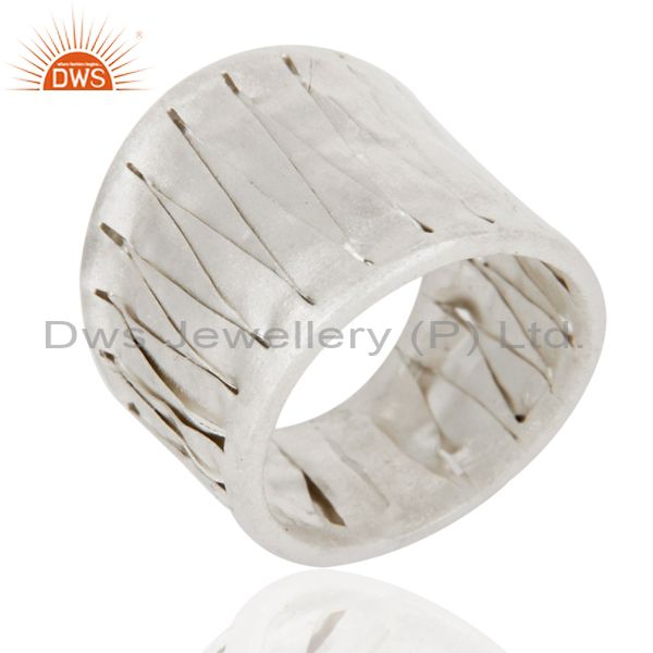 Plain Handcrafted 925 Sterling Silver Wire Weave Wide Ring Band Jewelry