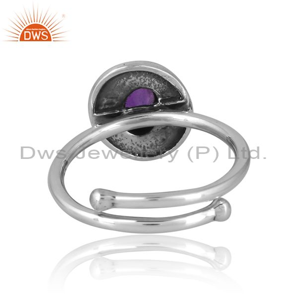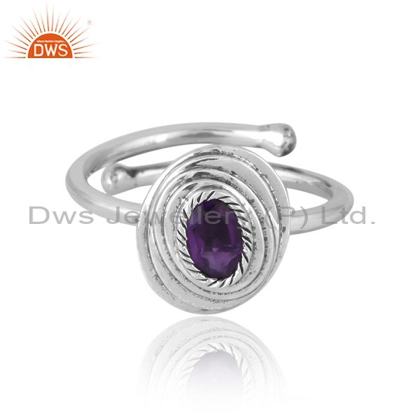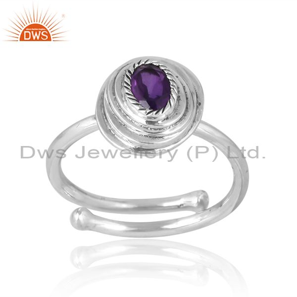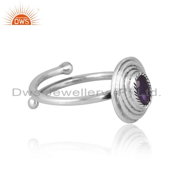 Plain Silver Band In Circular Pattern With Amethyst Stone