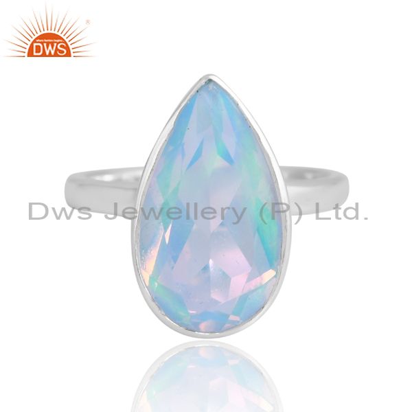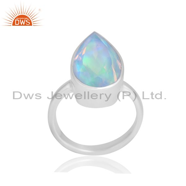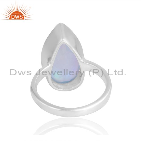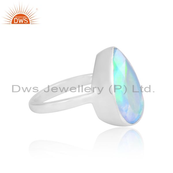 Plain Silver Band With Pear Shaped Aurora Opal Stone For Men