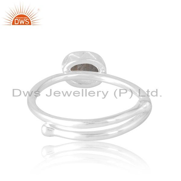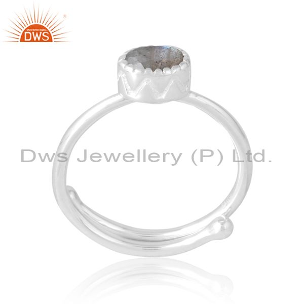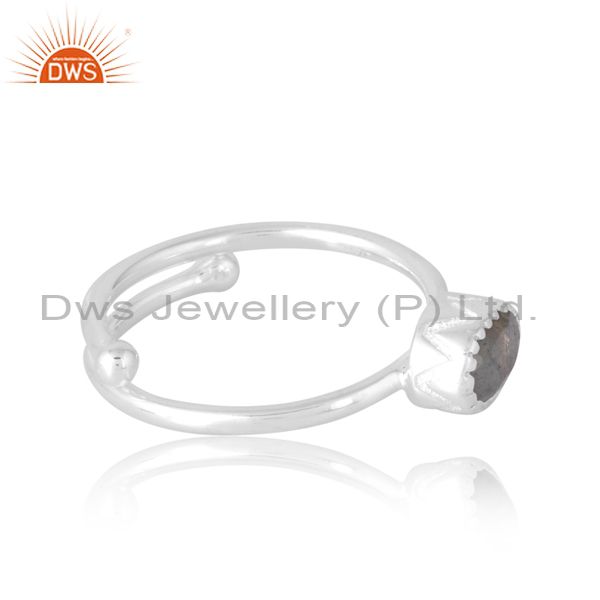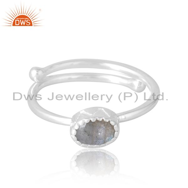Plain Silver Oval Cut Labradorite Ring Adjustable For Women