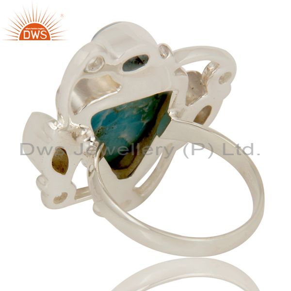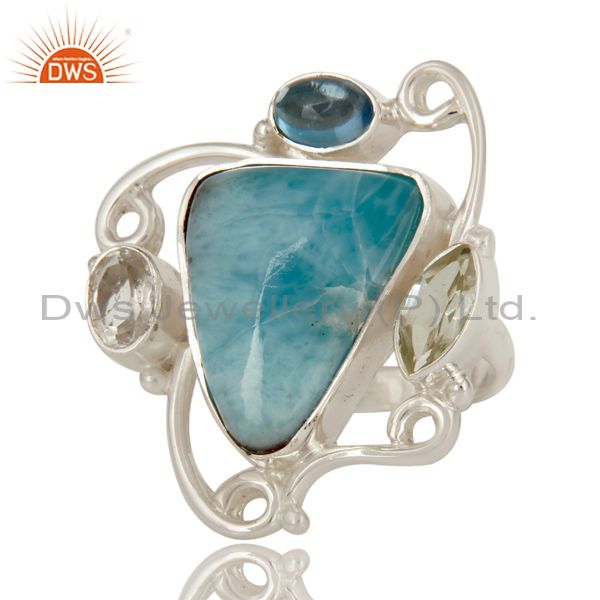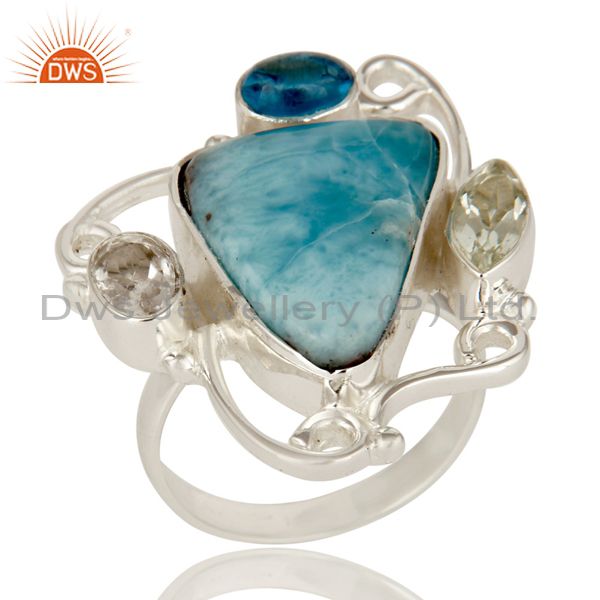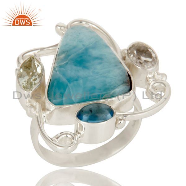 Prasiolite, Larimar and Blue Topaz Solid Sterling Silver Gemstone Ring