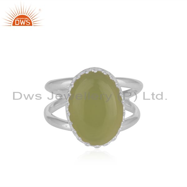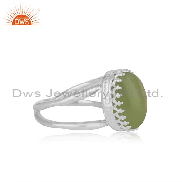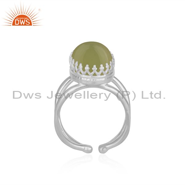 Prehnite Chalcedony Gemstone 925 Silver Crown Ring Manufacturer Jaipur